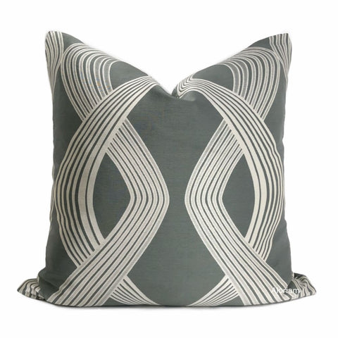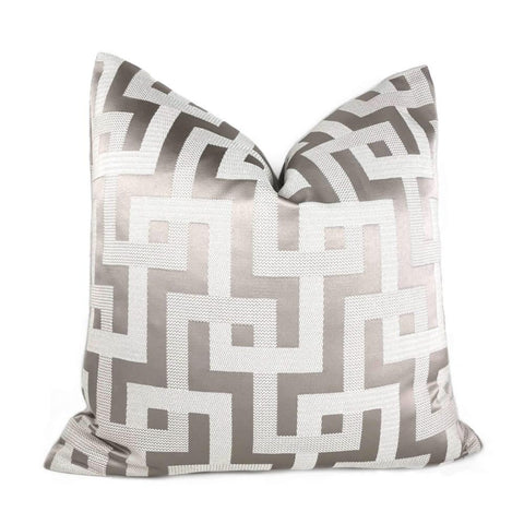 (CLEARANCE) Argos Silver Gray Greek Key Maze Fretwork Geometric Pillow Cover