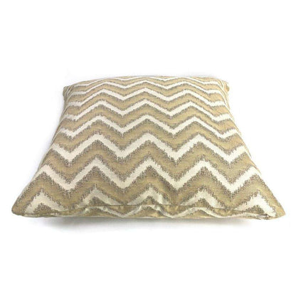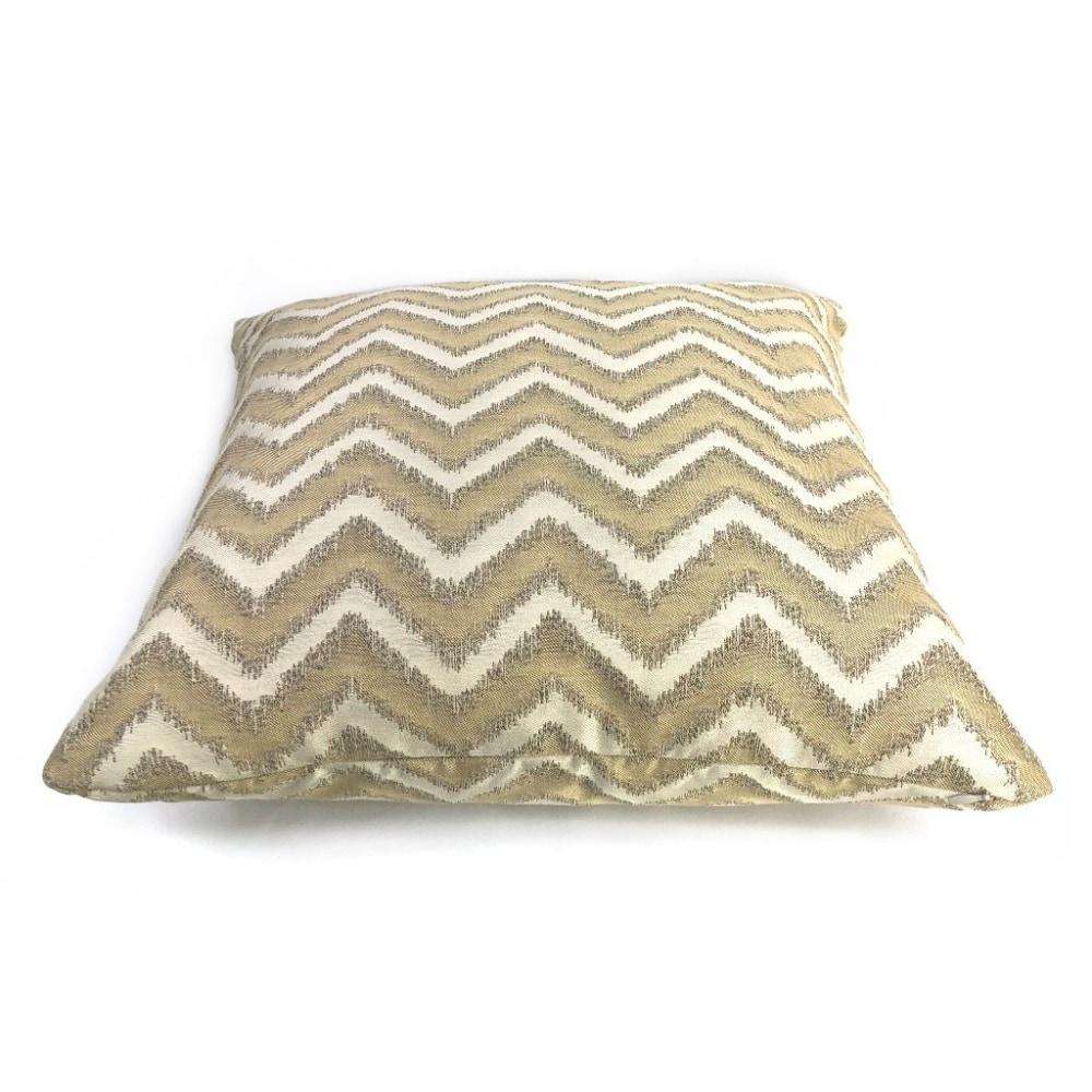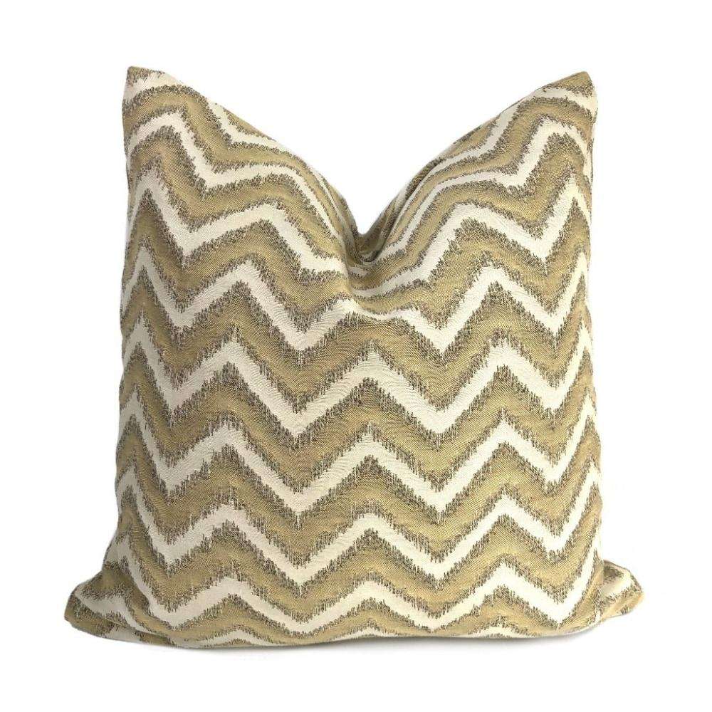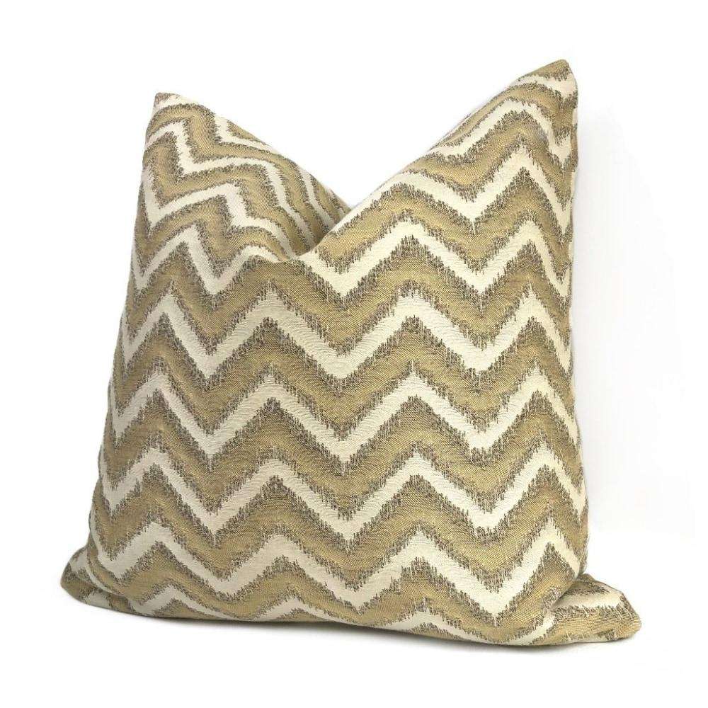 Wheat-toned golden chevrons woven on a light beige background make this pillow cover a great choice for any contemporary home interior. Designer upholstery woven fabric is used on both sides. Photographed in 20x20 insert.