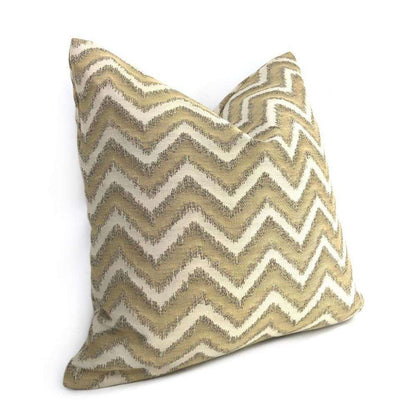(CLEARANCE) Whitmore Gold & Beige Chevron Stripe Pillow Cover