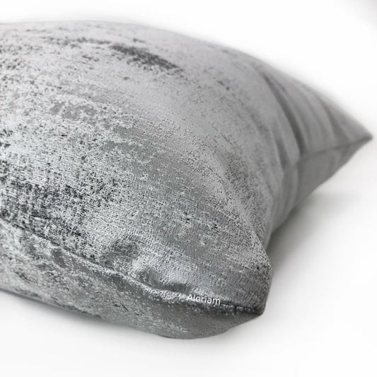 (CLEARANCE) Metallic Silver Gray Cream Paint Splatter Abstract Pillow Cover
