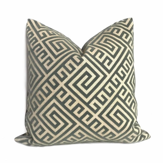 Robert Allen Greek Key Geometric Cloudy Blue-Green Gray Velvet Pillow Cover