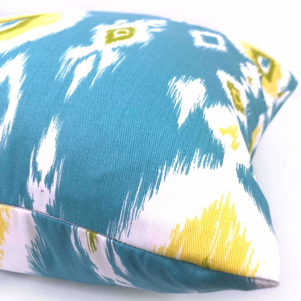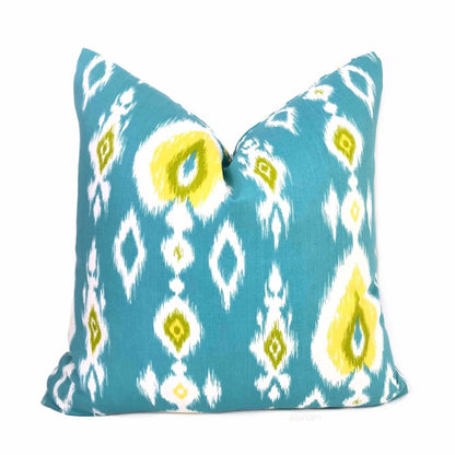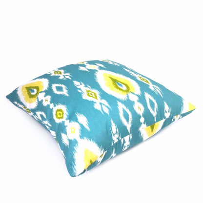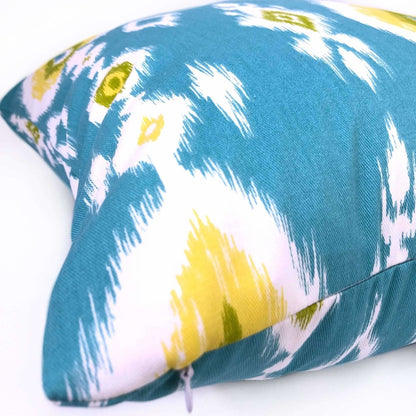 (CLEARANCE) Malabar Turquoise Blue Yellow White Ikat Pillow Cover