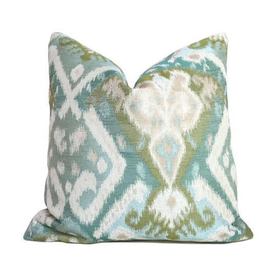 Ortega Ikat Southwest Aqua Green Blue Beige Pillow Cover (Kravet fabric)