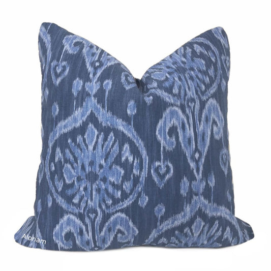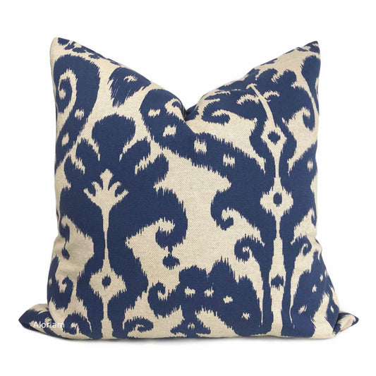 Marrakesh Ikat Ethnic Pattern Blue Beige Pillow Cover (Made from Lacefield Designs fabric)