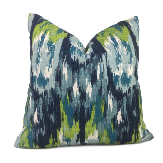 Monteverde Blue Green Abstract Ikat Cotton Print Pillow Cover