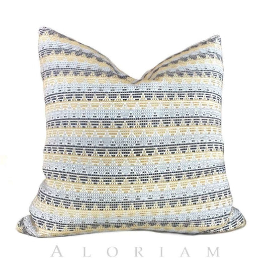 Robert Allen Point Blank Gold Leaf Yellow Blue Southwest Style Geometric Mosaic Stripe Pillow Cover
