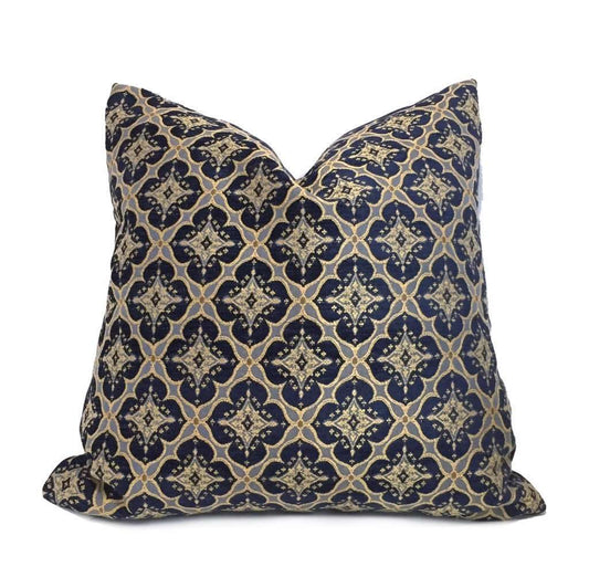 Navy Blue White Paisley Pillow Cover