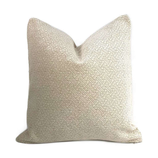 Petra Cream Geometric Greek Key Chenille Texture Pillow Cover