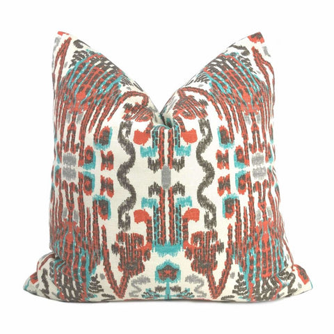Kubla Stone Gray Cream Ikat Ethnic Print Pillow Cover