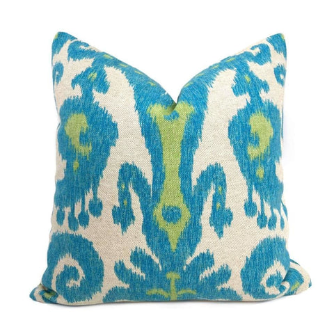 Kubla Spa Green Cream Ikat Ethnic Print Pillow Cover
