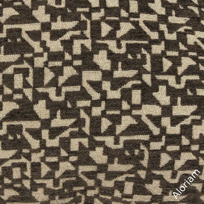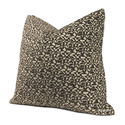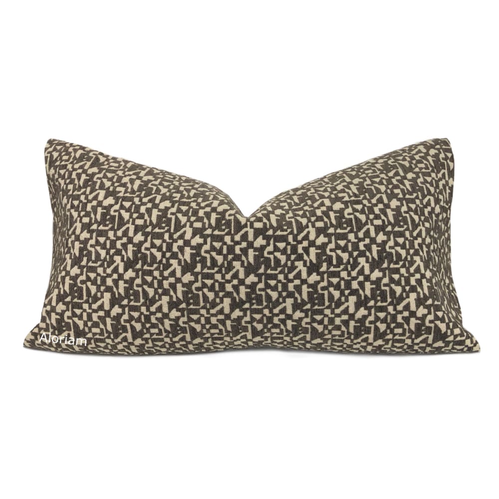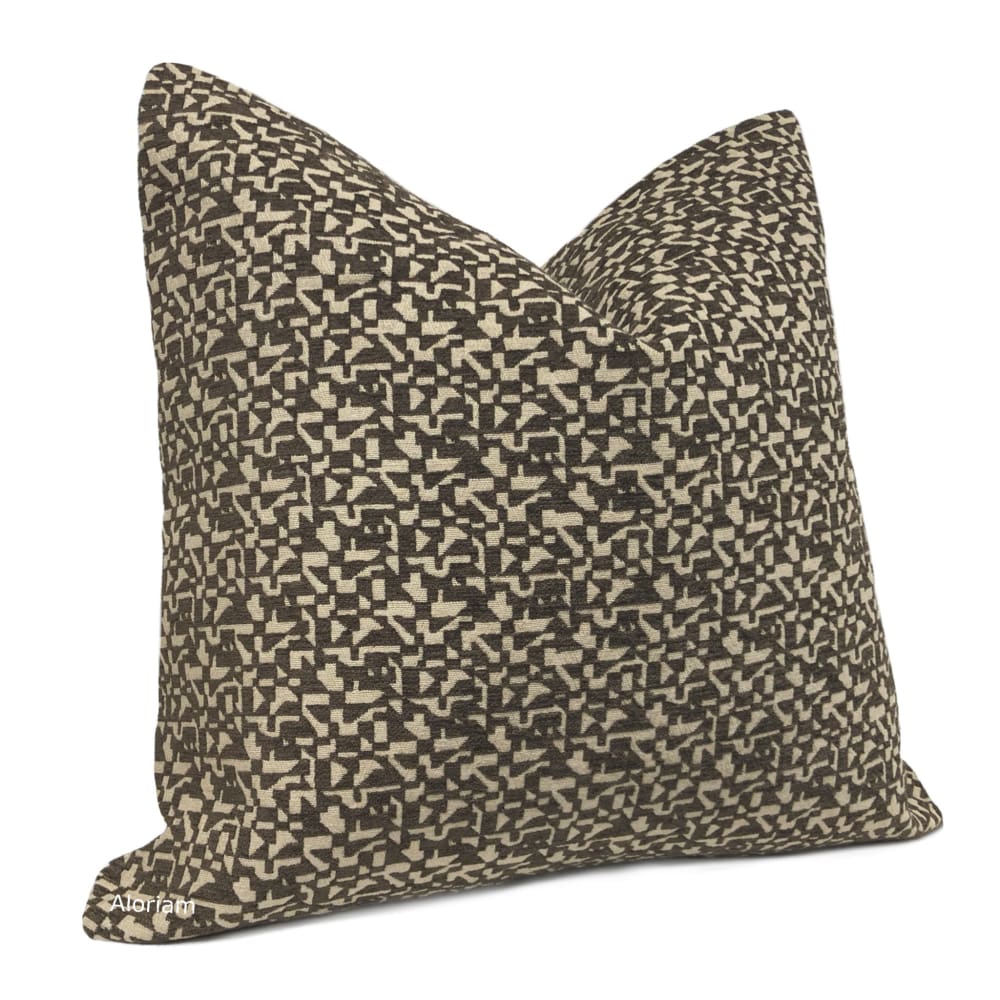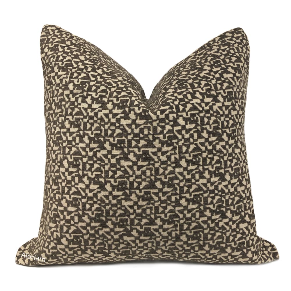 The Buchanan pillow cover features an abstract mosaic pattern woven in brown and beige.