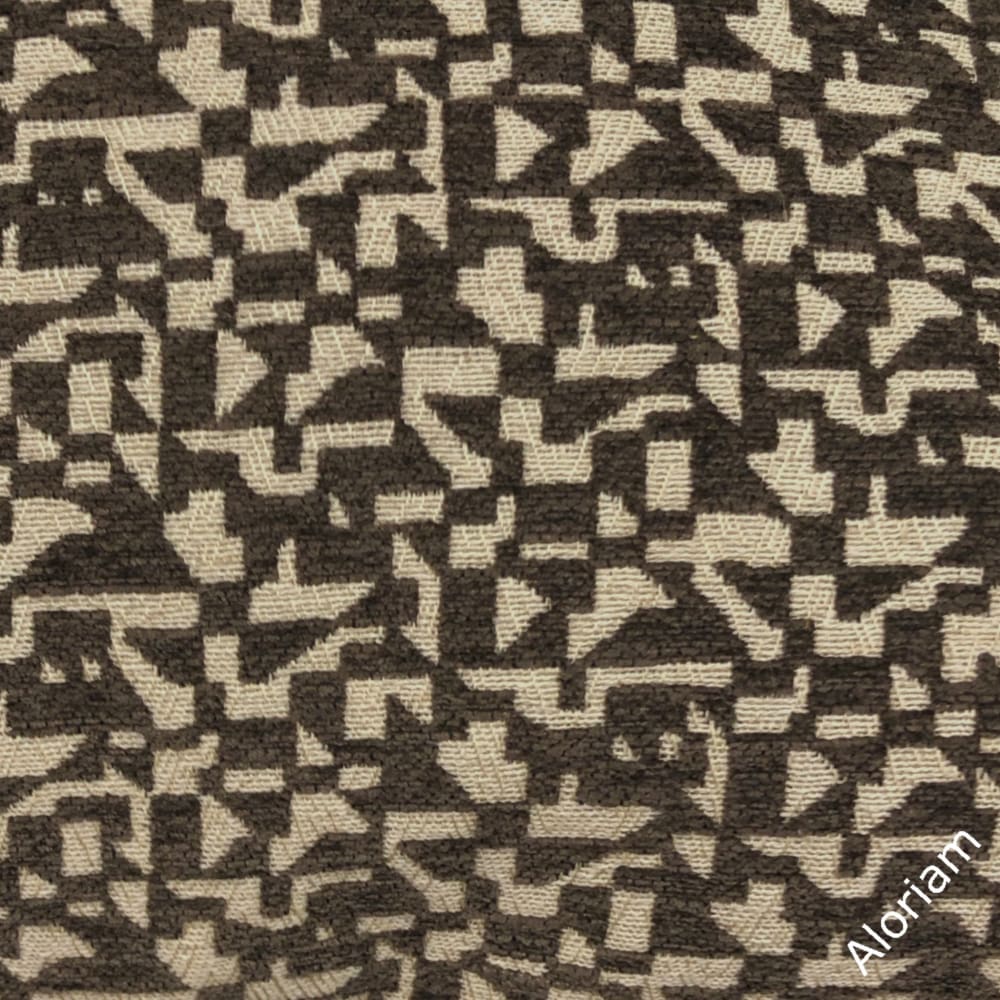 Pattern chenille upholstery fabric front reverses to a coordinating solid brown velvet backside.