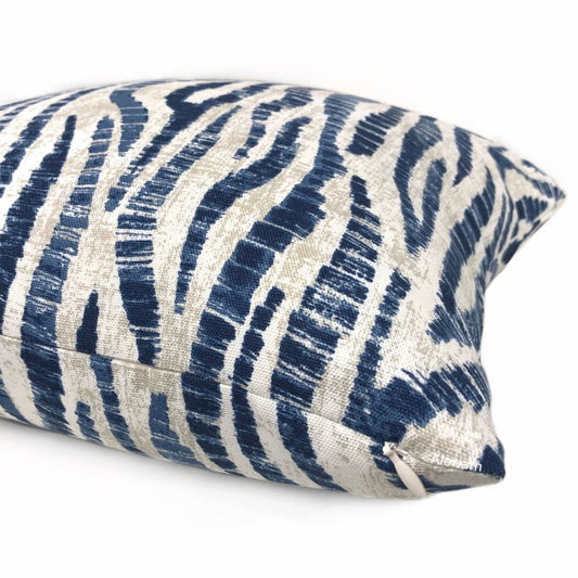 Omar Blue Ecru Animal Stripe Pillow Cover