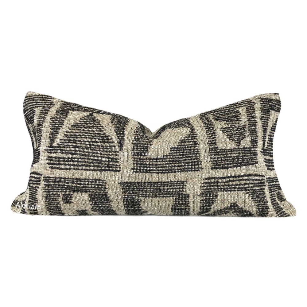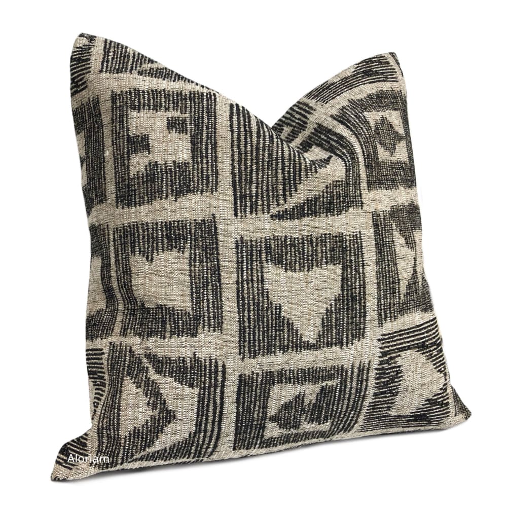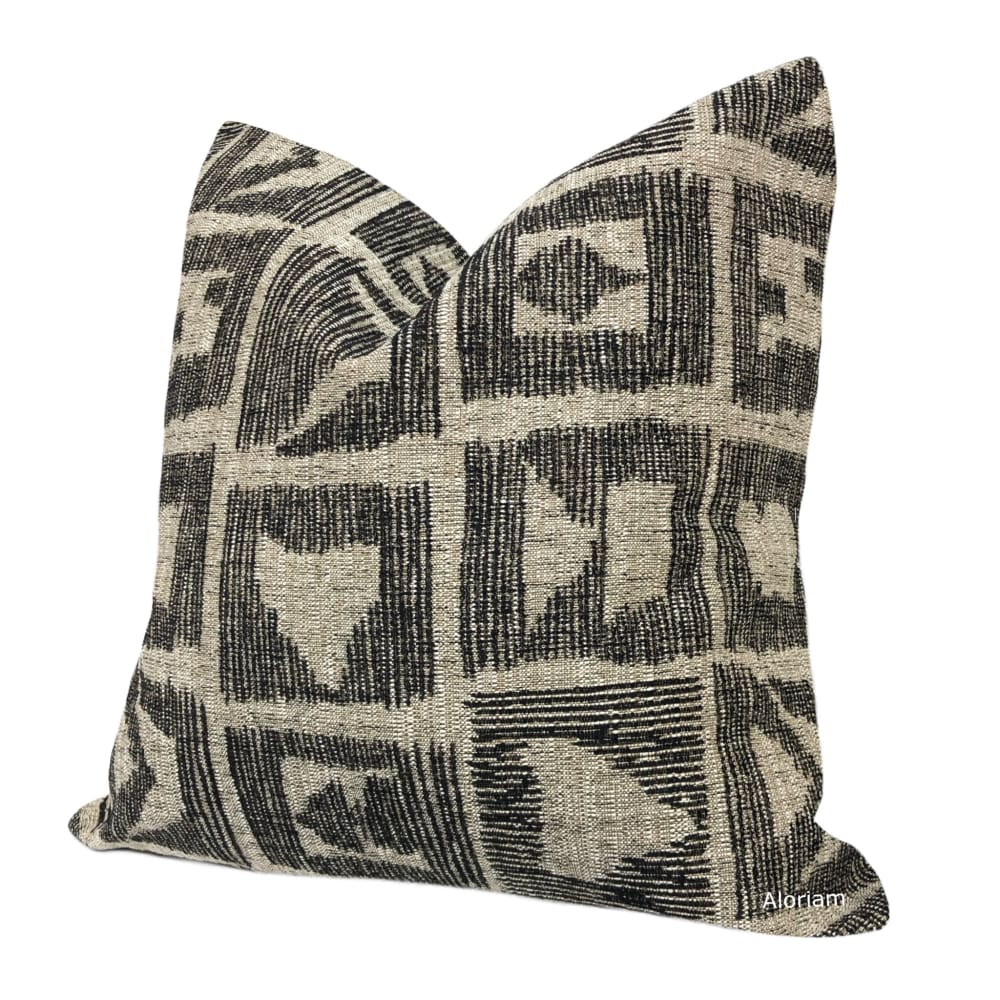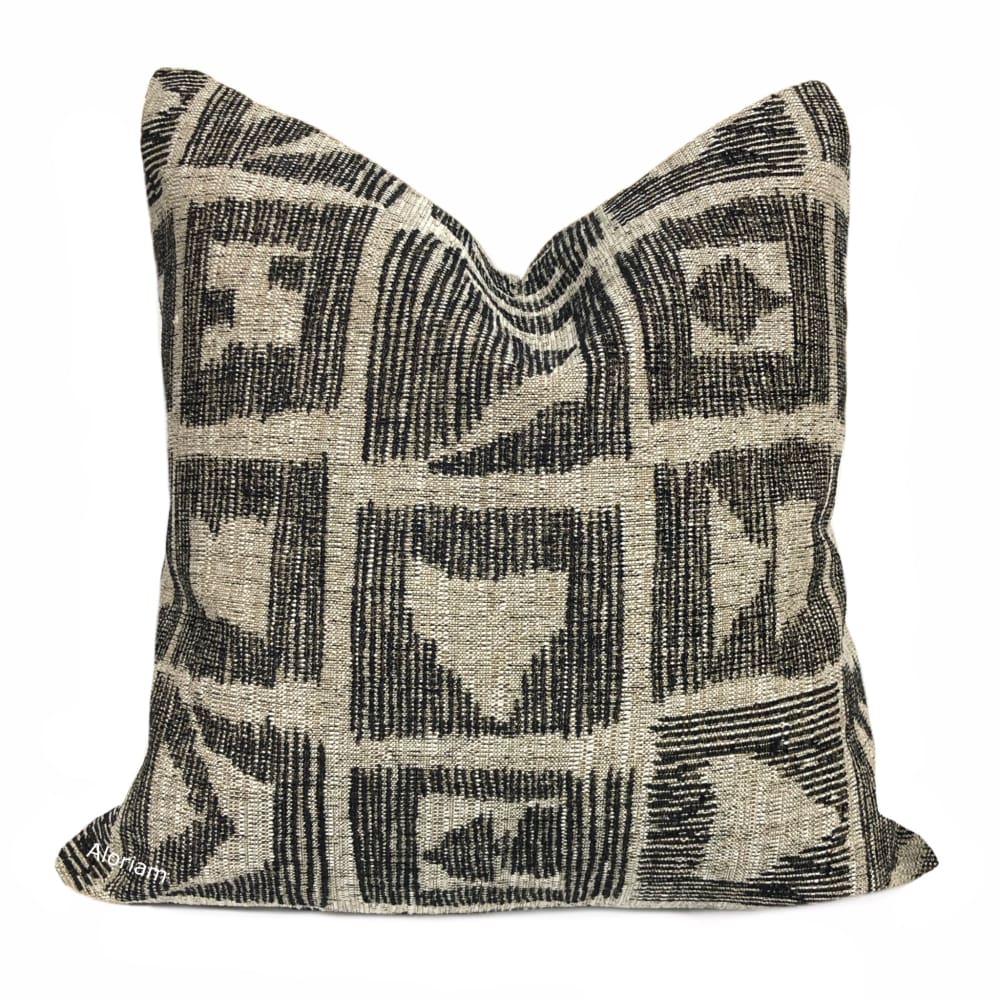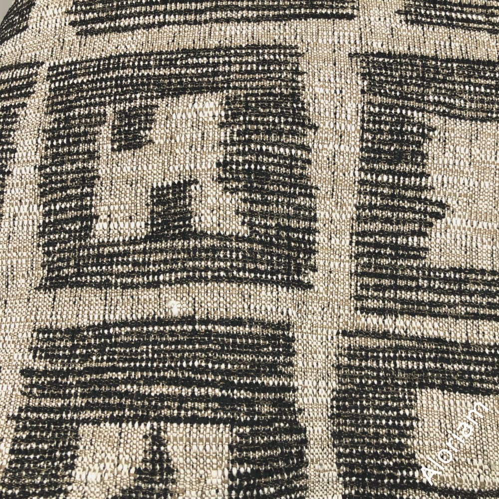 Zulu is a geometric blocks pillow cover with an ethnic flair woven in black and neutral brown.