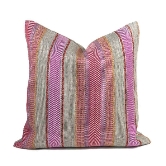 (CLEARANCE) Ogilvie Pink & Tan Textured Stripe Pillow Cover