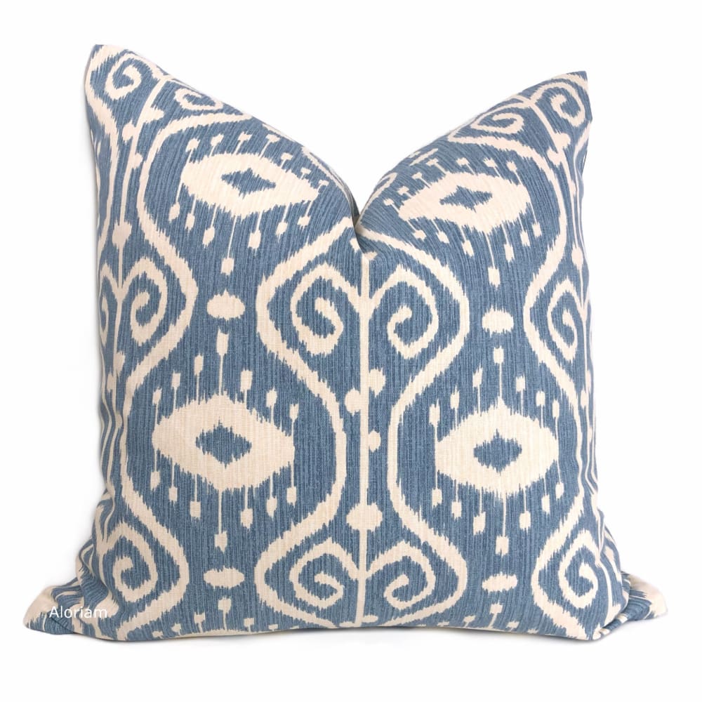 Kubla Denim Blue Cream Ikat Ethnic Print Pillow Cover