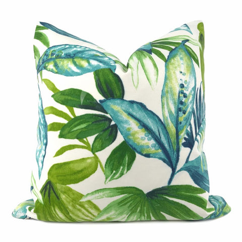 Nassau Green White Tropical Leaf Print Indoor Outdoor Pillow Cover