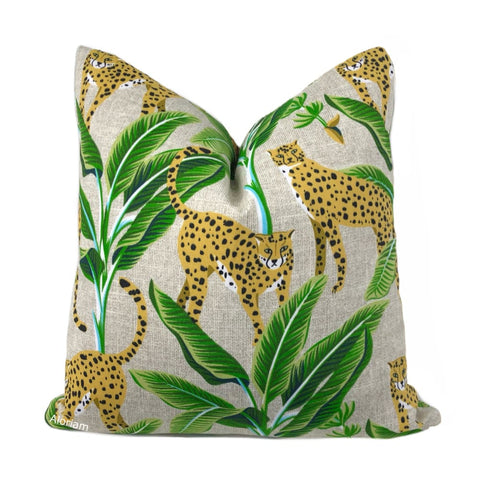 Jenga Leopards with Green Foliage Beige Indoor Outdoor Pillow Cover