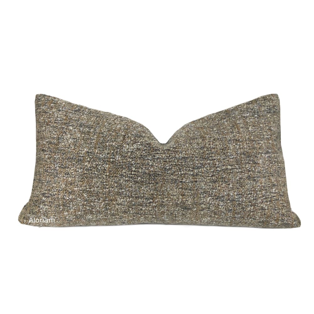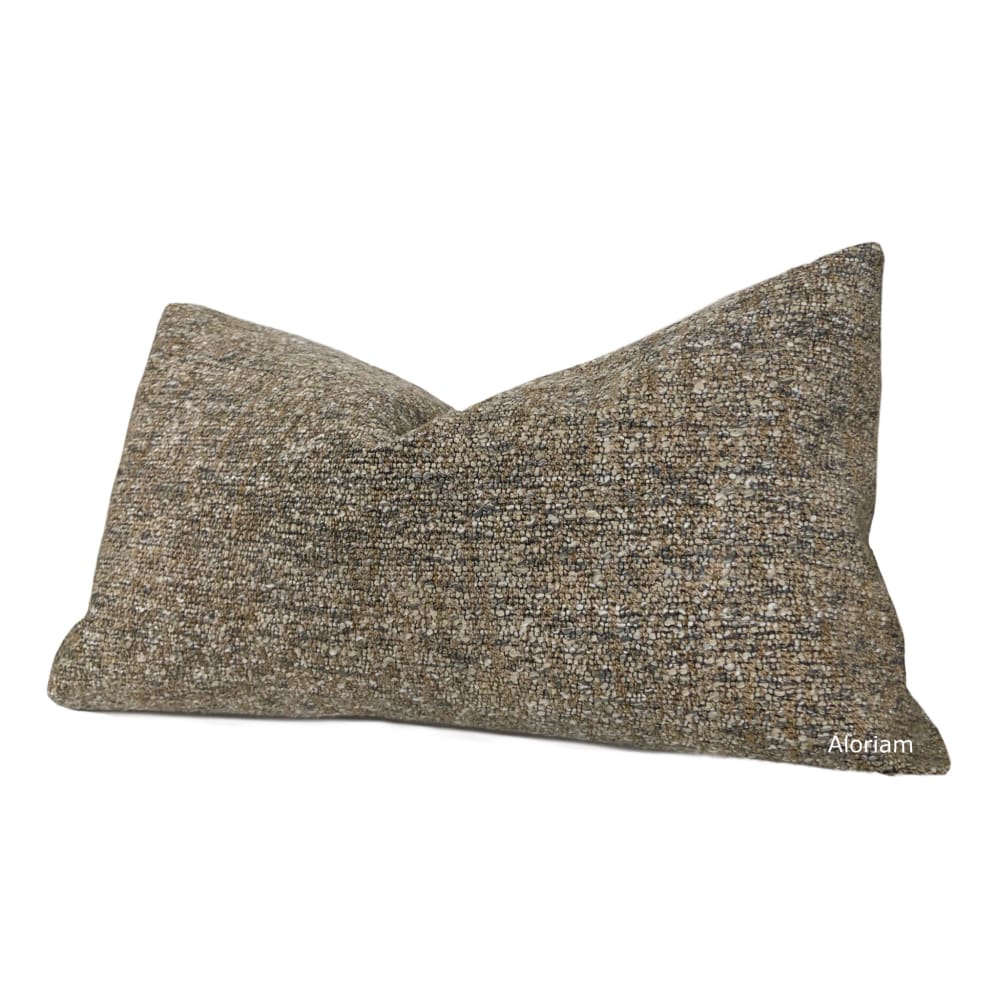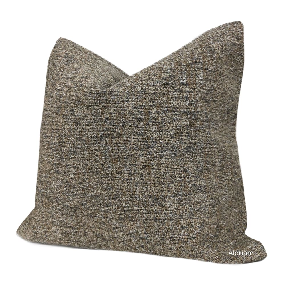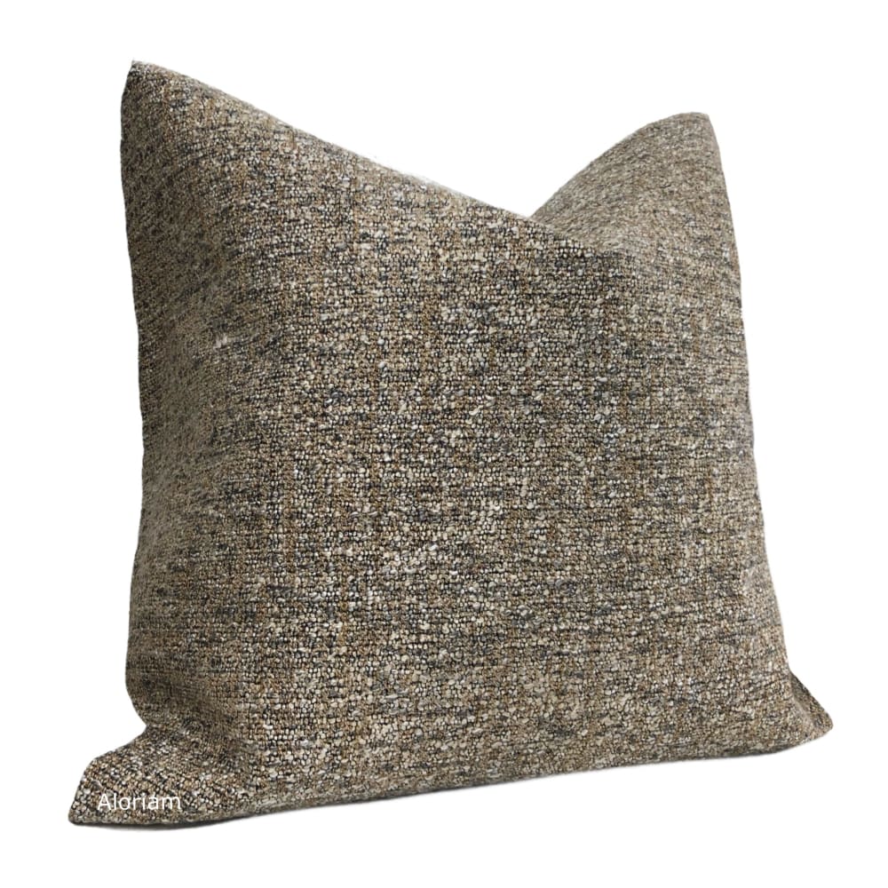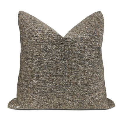 Phillip is a heavily textured pillow cover woven in a neutral mix of browns and grays.