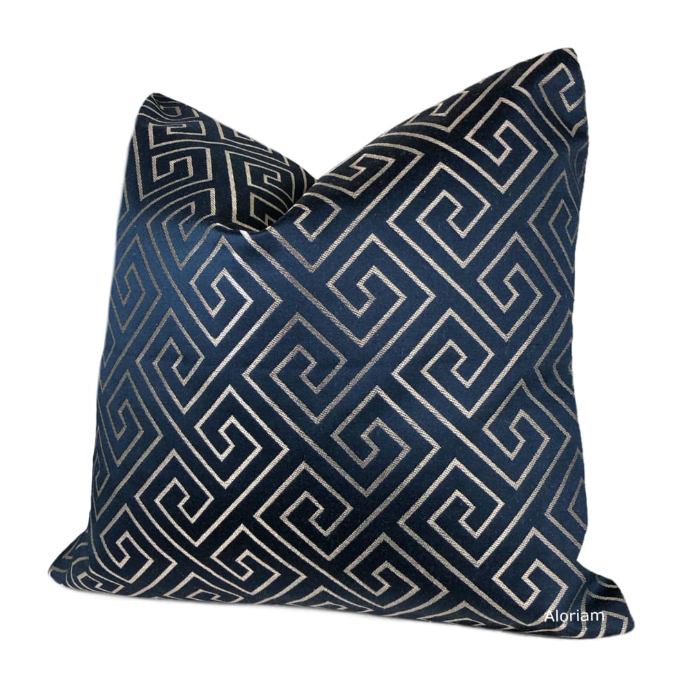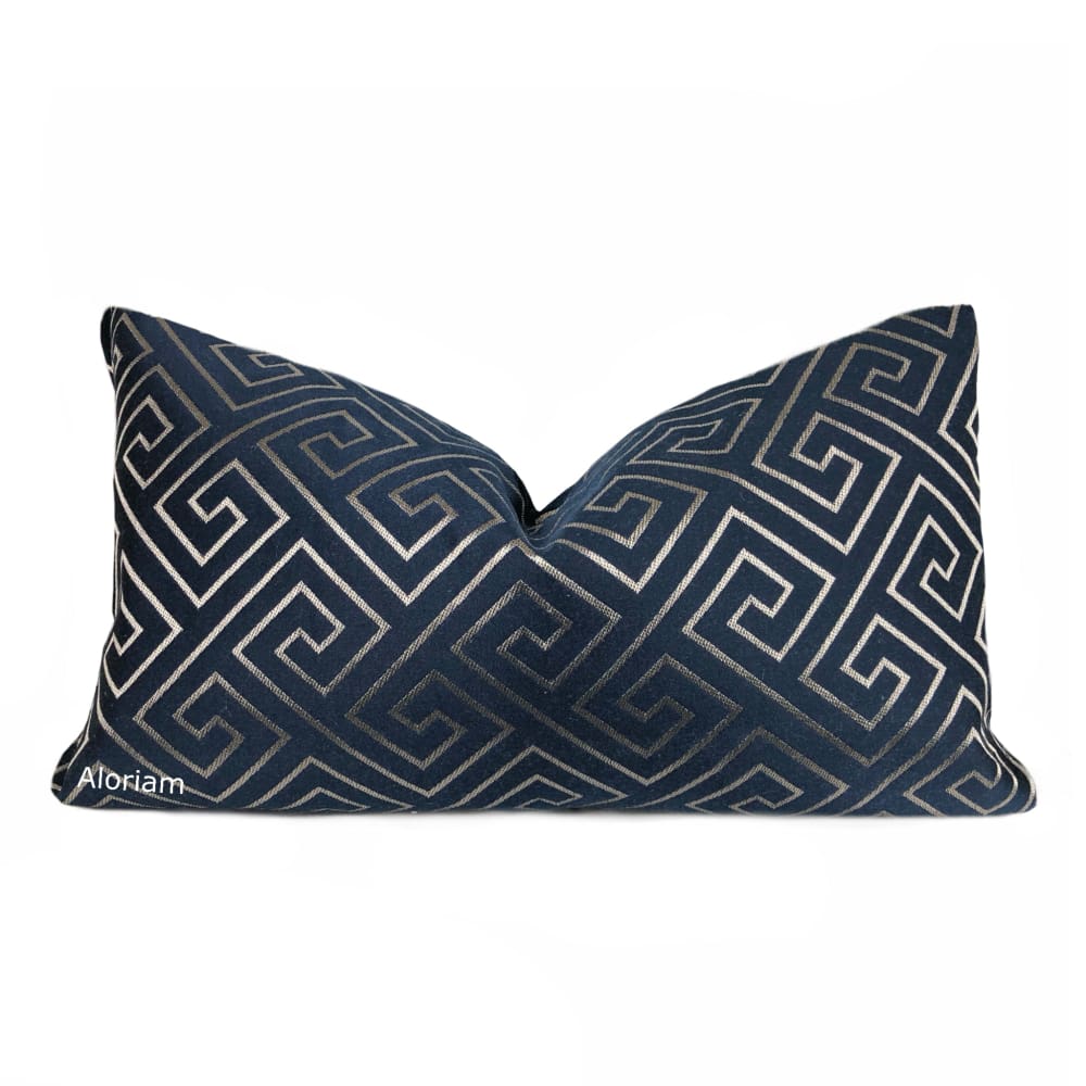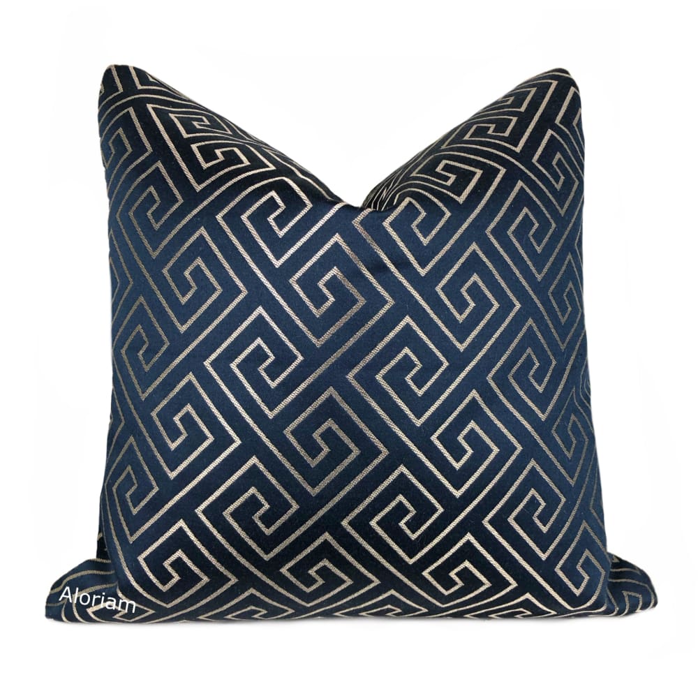 (CLEARANCE) Theseus Navy Blue Champagne Gold Greek Key Pillow Cover