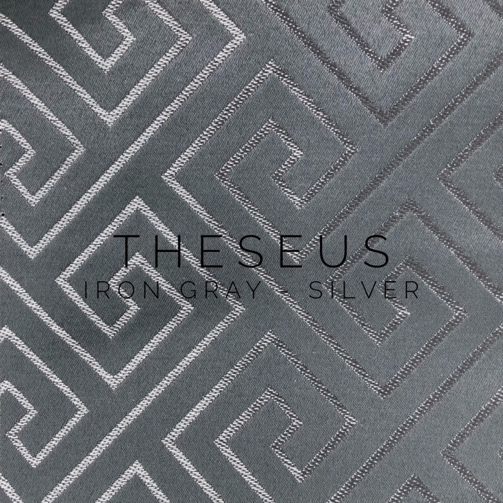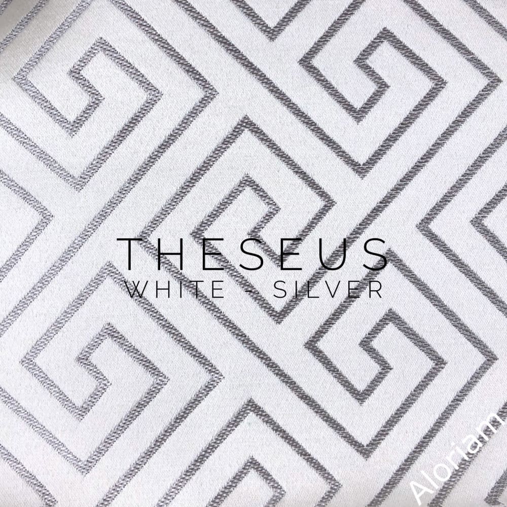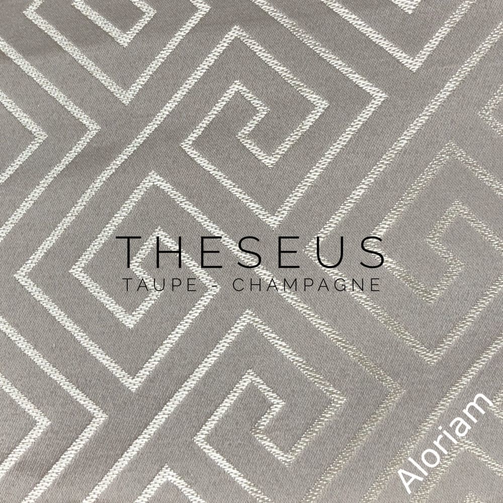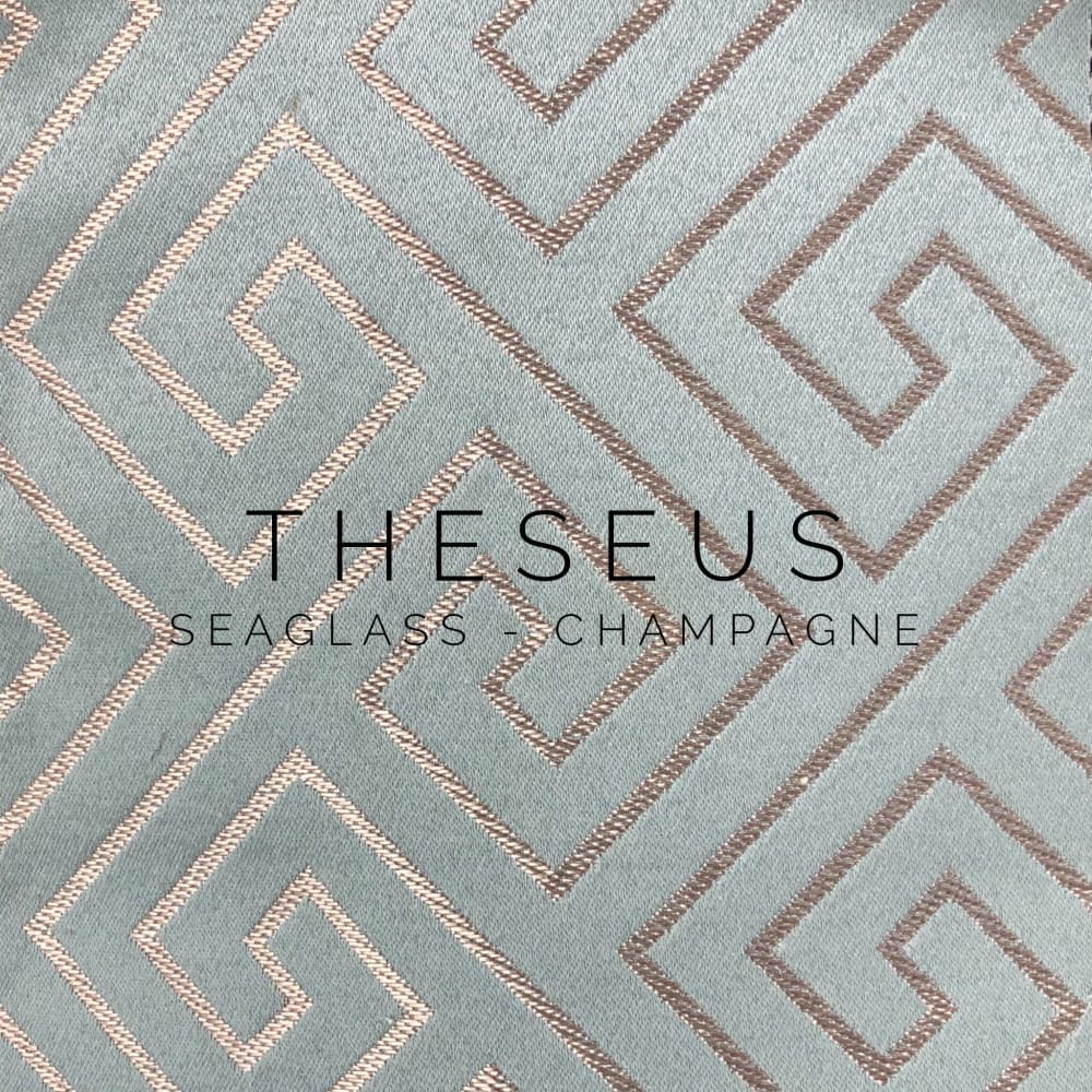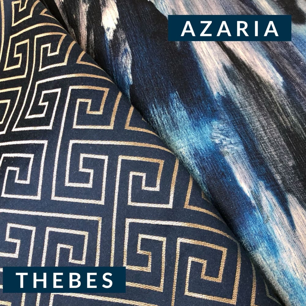 Theseus is a classic greek key pillow cover woven in light champagne gold and navy blue. Pattern fabric on both sides. Photos show the 19x19 cover size (filled with 20x20 insert).