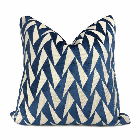 Malibu Robins Egg Blue & Taupe Beige Velvet Chevron Pillow Cover