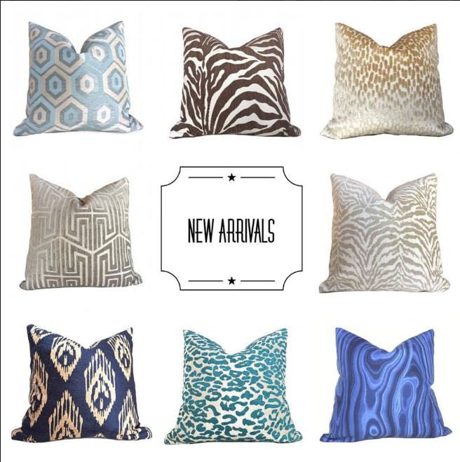 Preziosa II Blue Tan Beige Agate Geode Pattern Pillow Cover (Kravet fabric)