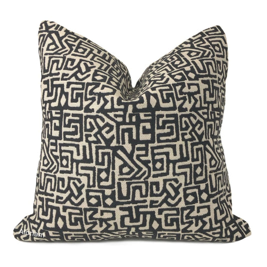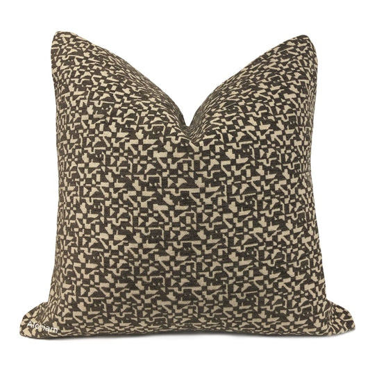Thebes Brown Beige Greek Key Velvet Pillow Cover