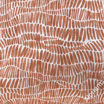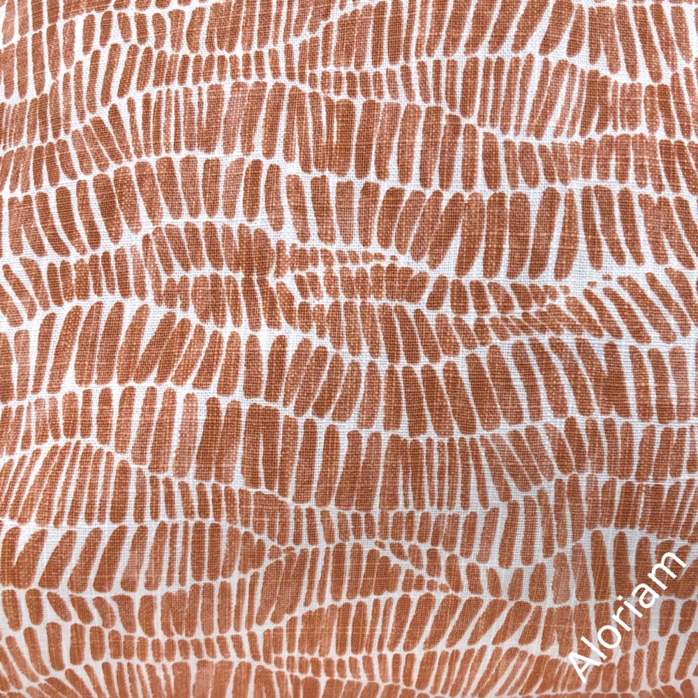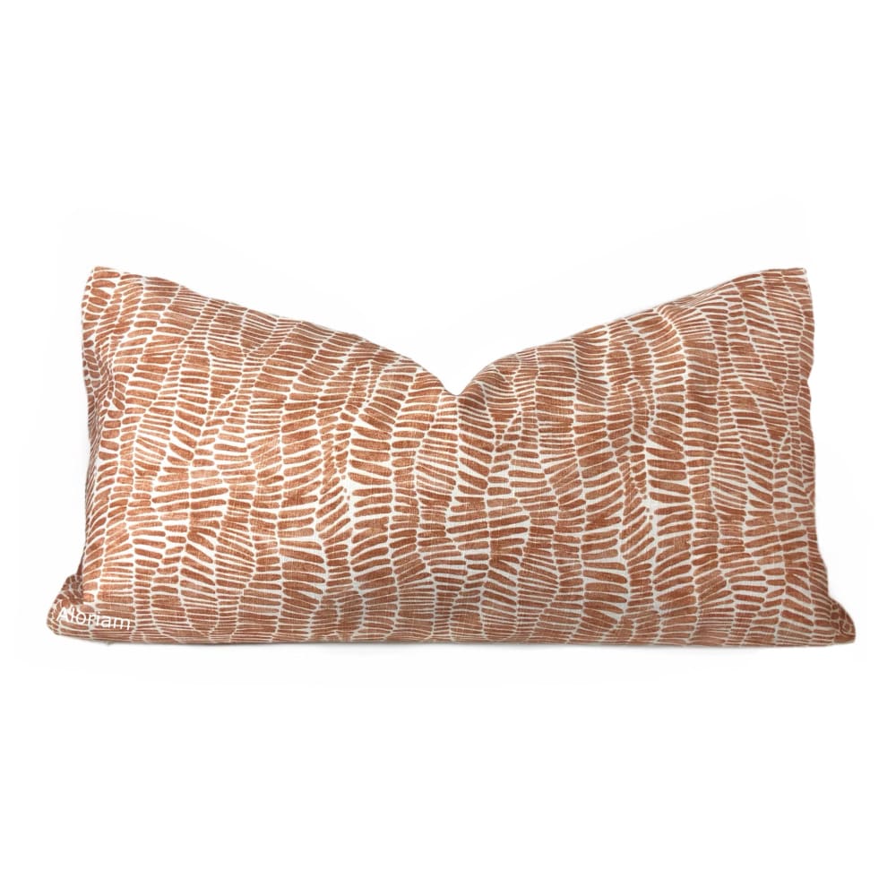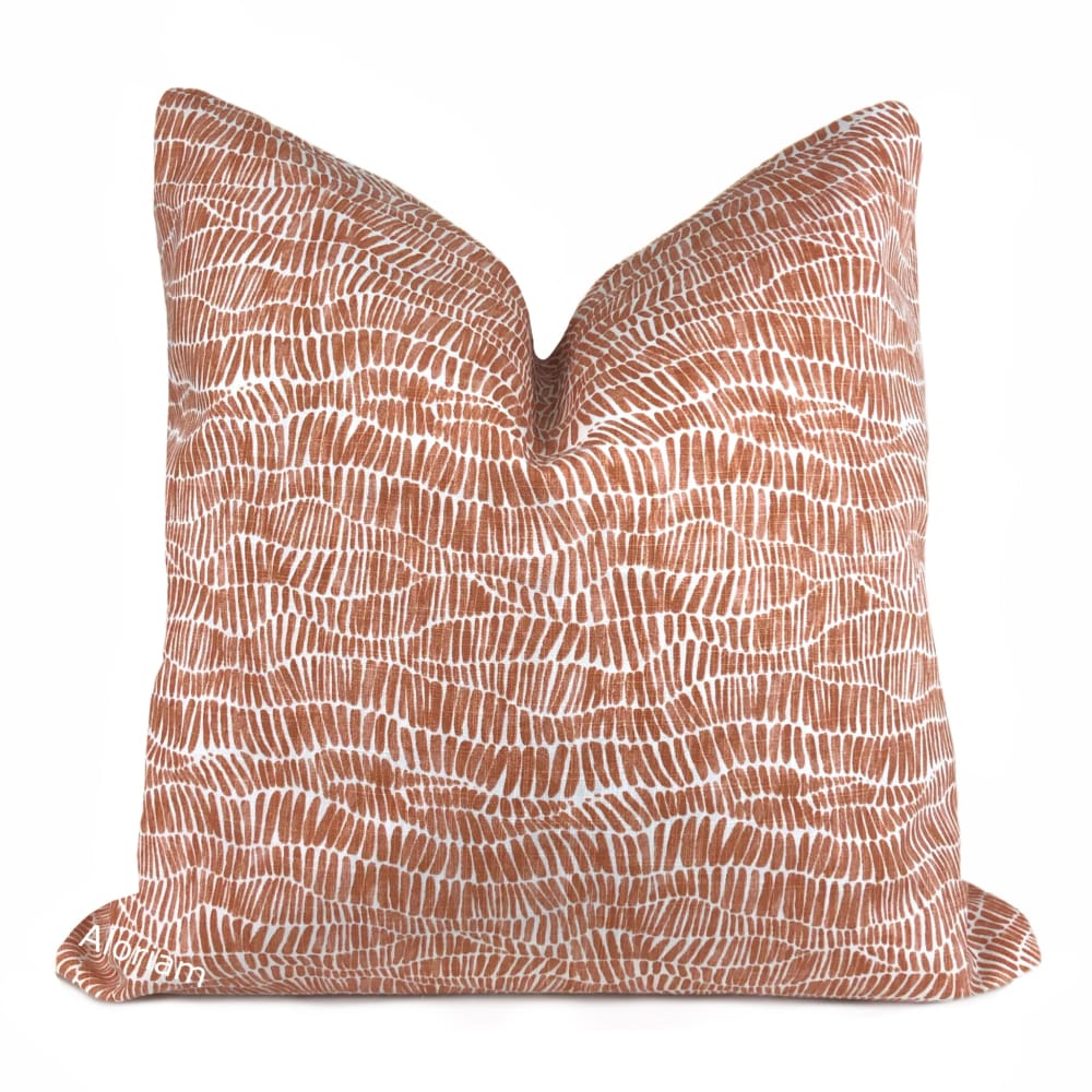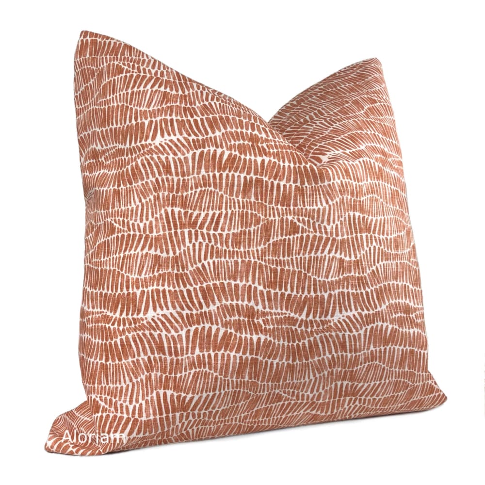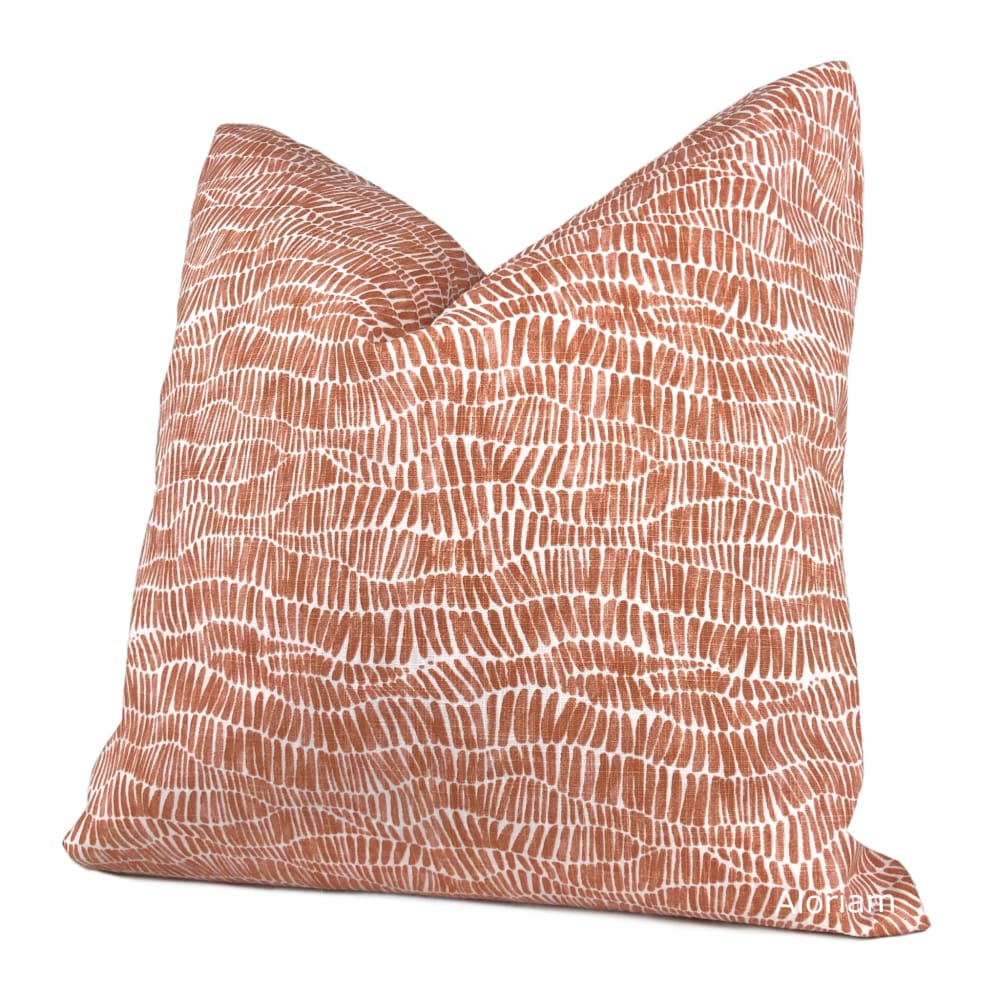 Anouk is a cotton pillow cover featuring a wavy abstract design printed in rust orange and white.