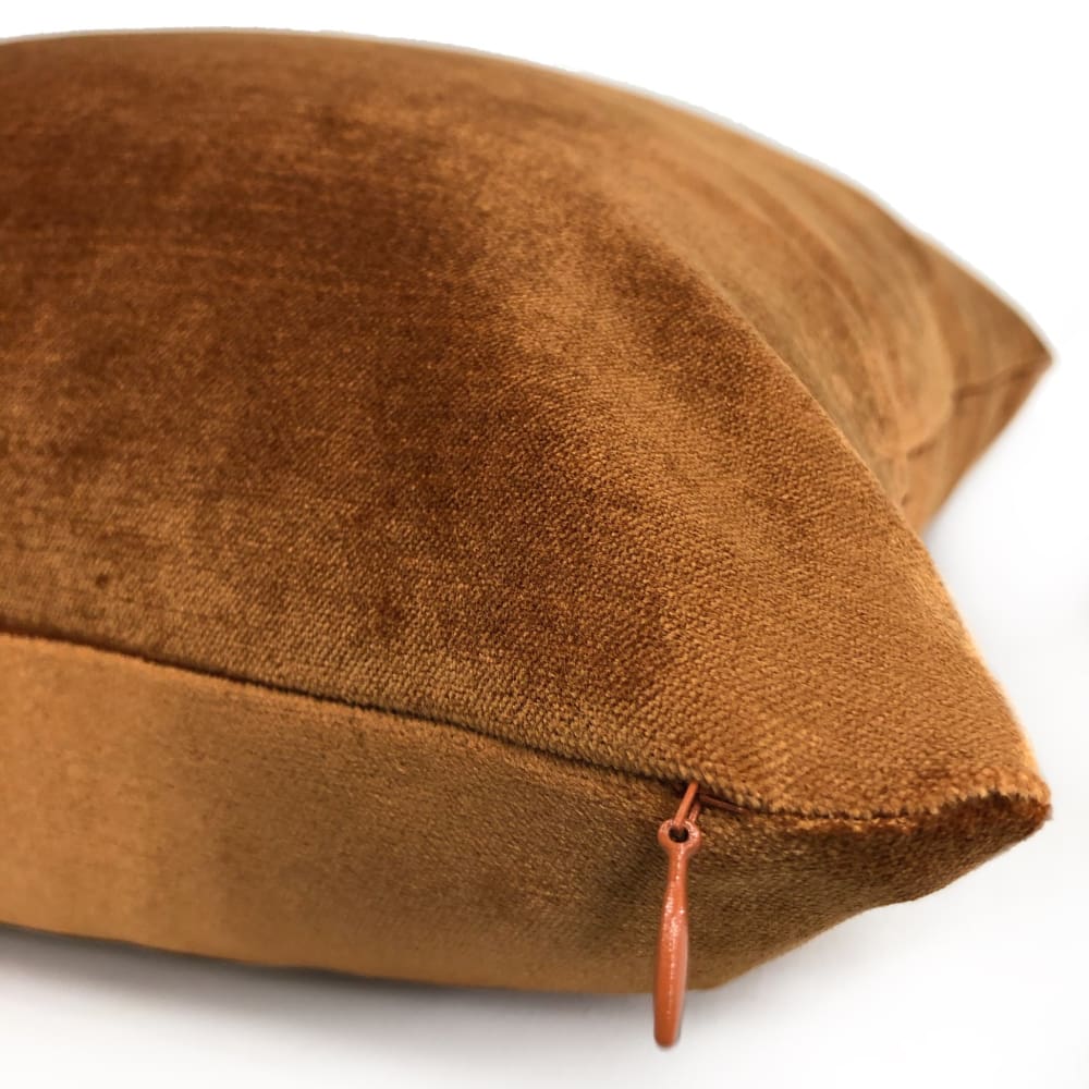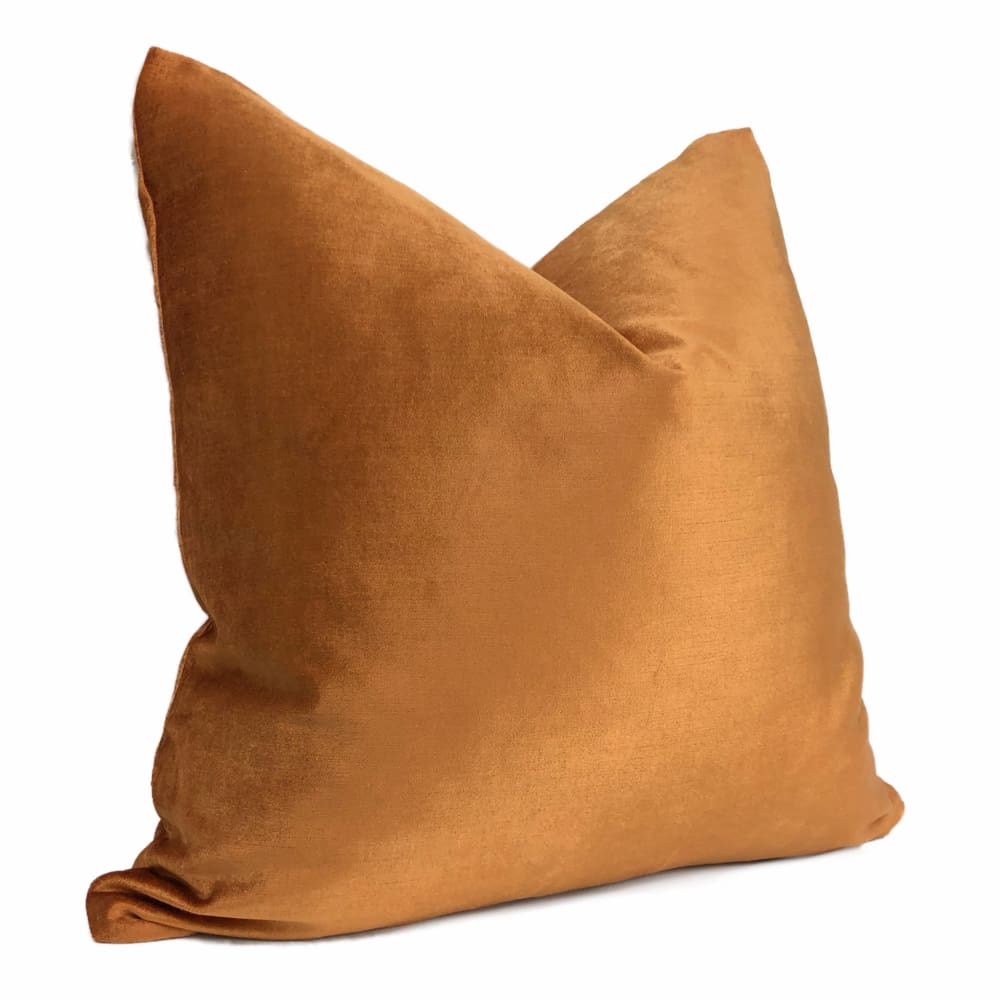 Richly colored with a lustrous shine, this solid copper orange velvet pillow cover will saturate your space with light and warmth.