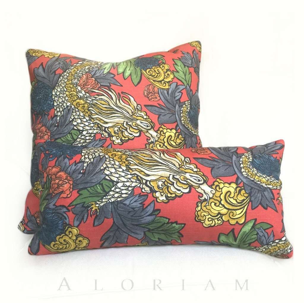 Robert Allen Dwell Studio Ming Dragon Persimmon Orange Chinoiserie Throw Pillow Cover