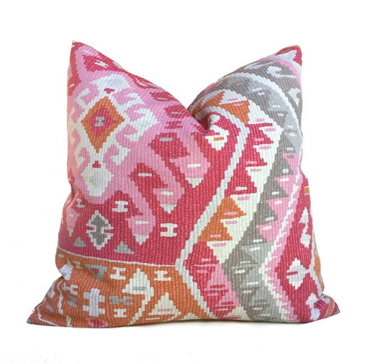 Chantel Pink Orange Blue Mix Basketweave Pillow Cover (Fabric by the Yard available)