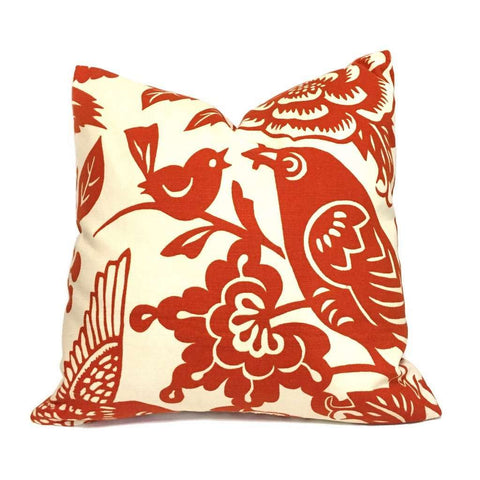 (CLEARANCE) Thomas Paul Modern Tangerine Orange Aviary Bird Print Pillow Cover