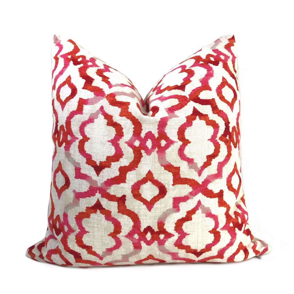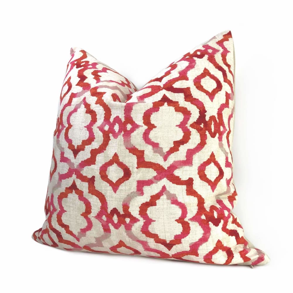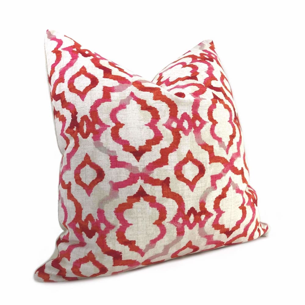 Amina Pink Red Moroccan Ikat Geometric Lattice Pillow Cover