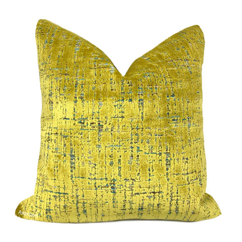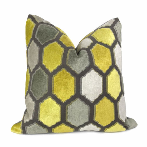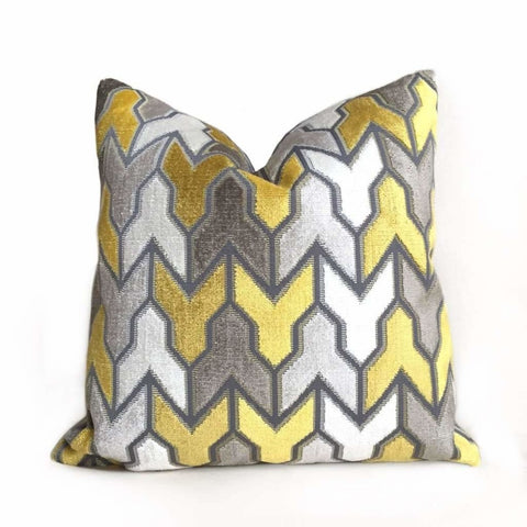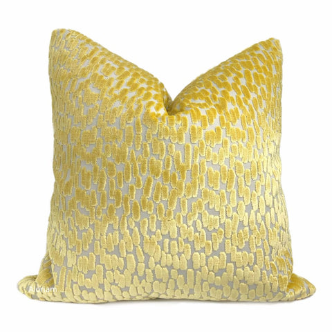 (CLEARANCE) Maestro Geometric Buttercup Yellow Cut Velvet Pillow Cover