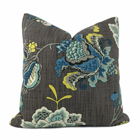 (CLEARANCE) Persephone II Teal Green Yellow Floral Pillow Cover