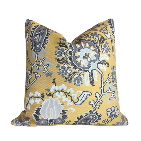 (CLEARANCE) Designer Yellow Gray Aztec Flower Southwest Tribal Style Floral Pillow Cover (Fits 20x20 Inserts)