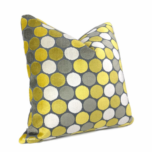 Kendall Yellow Gray White Large Polka Dot Velvet Pillow Cover