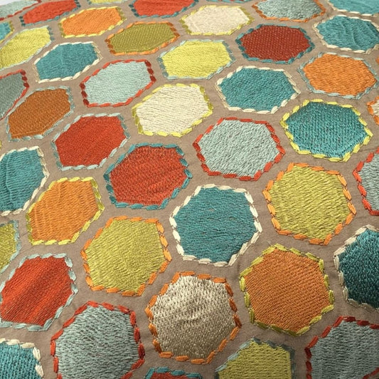 Khalia Multicolor Embroidered Hexagon Geometric Pillow Cover