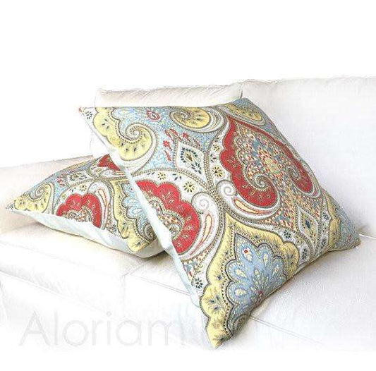 Kravet Latika Festival Paisley Medallion Red Yellow Light Blue Linen Pillow Cover