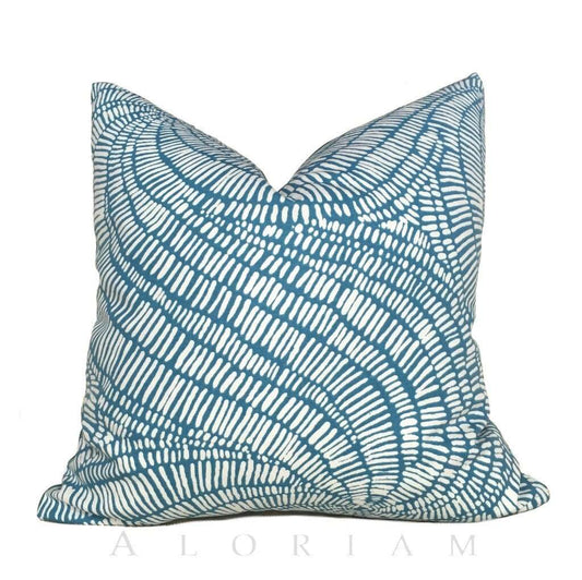 Kravet Jonathan Adler Regato Lagoon Navy Blue Aqua Linen Pillow Cover