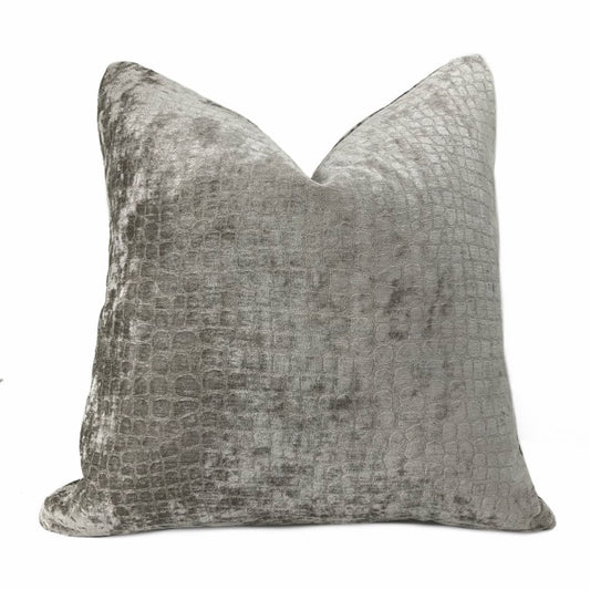 Silver Gray Alligator Skin Pattern Chenille Pillow Cover