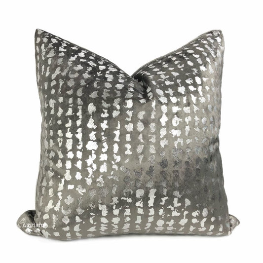 Matteo Graphite & Silver Metallic Leopard Spot Pillow Cover