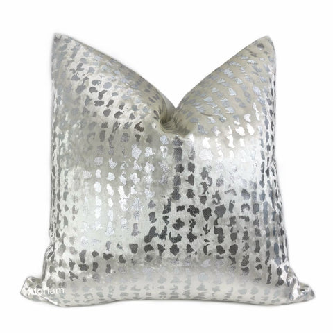 Matteo White & Silver Metallic Leopard Spot Pillow Cover