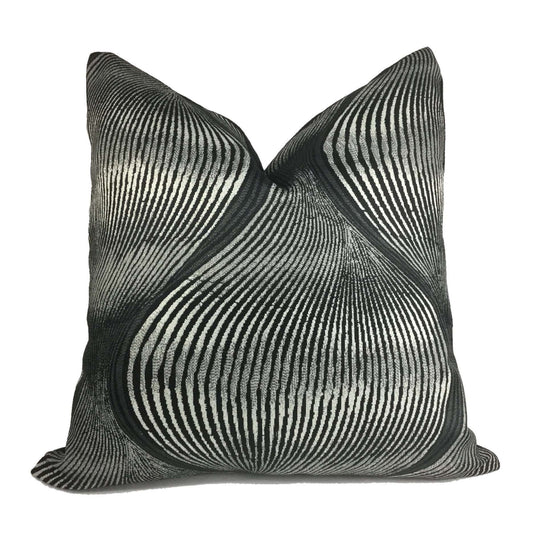 (CLEARANCE) Ripley Gray & Metallic Silver Two Tone Squiggle Stripe Velvet Pillow Cover