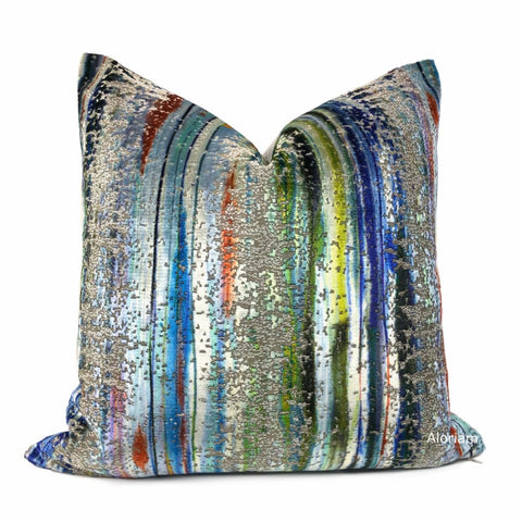 Robert Allen Beacon Hill Gray & Silver Textile Art Provocation Silk Pillow Cover