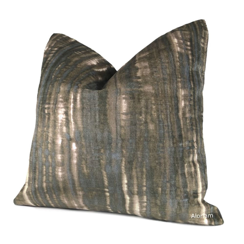 Dante Brown Slate Blue Gray Abstract Velvet Pillow Cover