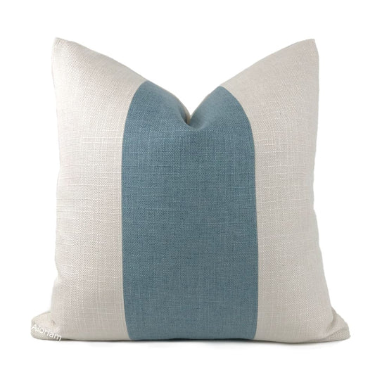 Tybee Ocean Blue Beige Brown Textured Stripes Pillow Cover (Fabric by the Yard available)