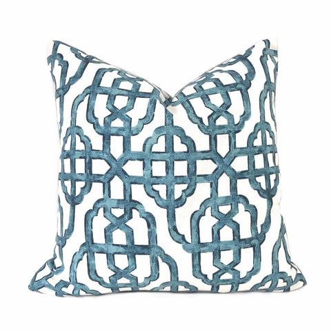 Imperial Trellis Seaside Blue White Pillow Cover (Lacefield Designs Fabric)