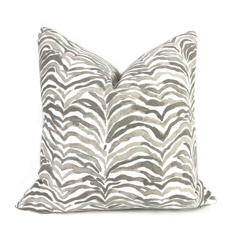 Serengeti Taupe Gray White Animal Stripe Pillow Cover (Lacefield Designs fabric available by the yard)